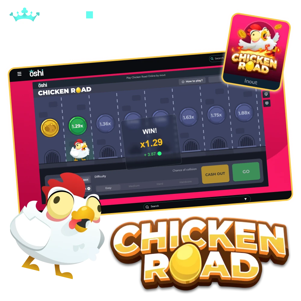Chicken Road on Oshi Casino is a crash-style game from a modern instant game studio, popular in Australia for its simple rules, fast rounds and high win potential at small bet sizes. You watch the multiplier climb, then cash out before the chicken gets hit. Responsive design, quick bets and easy balance tracking make it ideal for mobile play.